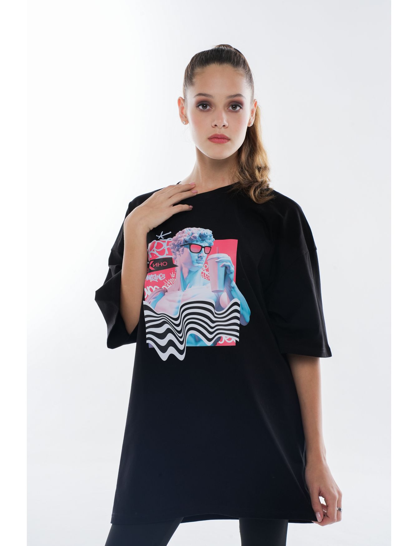 Женская оверсайз футболка. Модель свободной посадки за счет заниженной линии плеча и прямого кроя. Премиум полотно с гладкой приятной поверхностью снаружи. Трикотажное полотно футболки состоит на 92% из хлопка качества пенье, что дает высокую воздухопроницаемость, а 8% из эластана, что повышает износостойкость изделия, добавляет эластичность, сохраняет его цвет и снижает сминаемость футболки.
