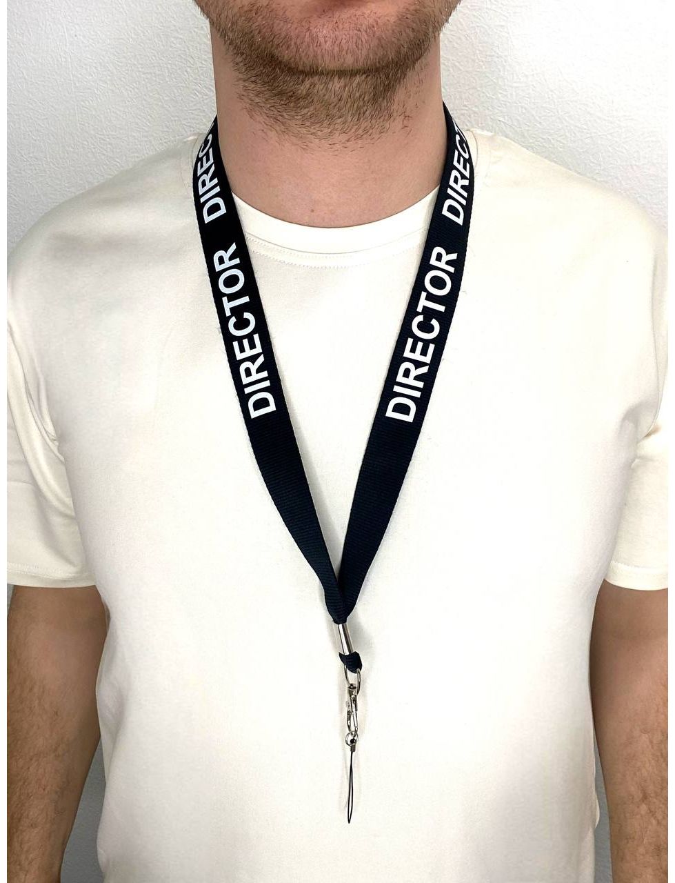 Ланъярд “Director” – это специальные ленты, на которых крепится рация или бейдж, а сама лента надевается на шею.