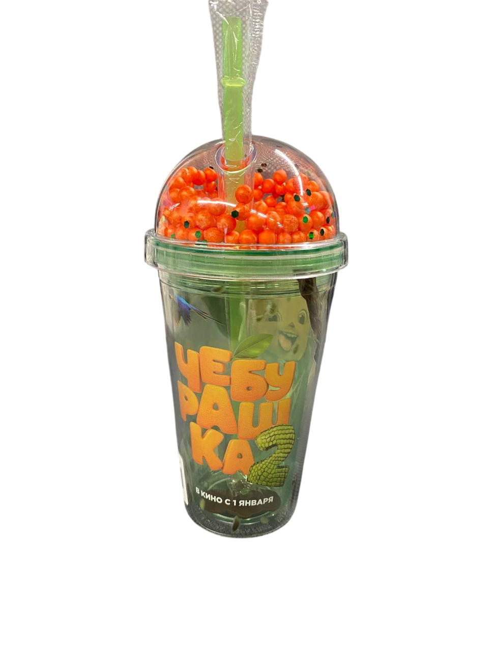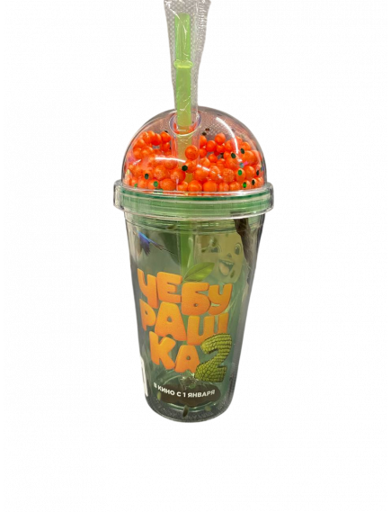 Стакан пластиковый с крышкой и игрушкой топпер "Чебурашка 2"